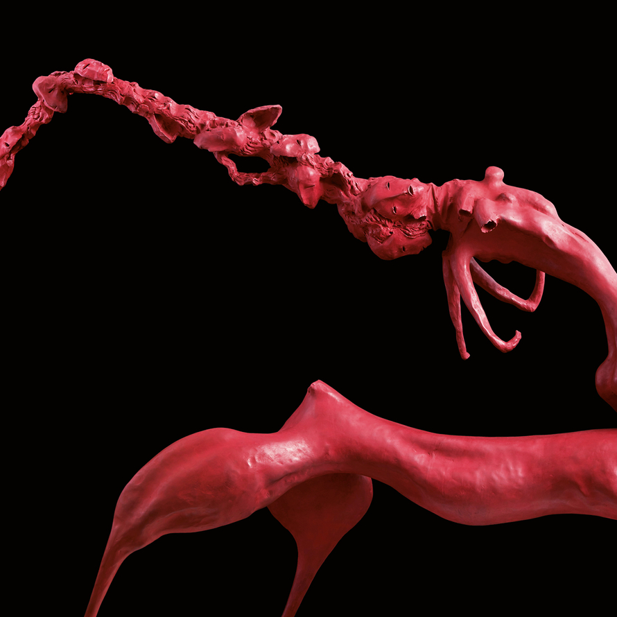 Эта смелая скульптура, порывающая с любыми ограничениями скульптуры как вида искусства. Она композиционно крайне выразительна – с сильной направленной осью, с взаимоотношением композиционных центров, с преодолением тяжести материала. Она смела в колористическом решении - нежный, но вызывающий оттенок кораллового придает ей ощущение найденной подводной реликвии. Она предполагает длительное рассматривание со всех сторон, испещрена деталями.