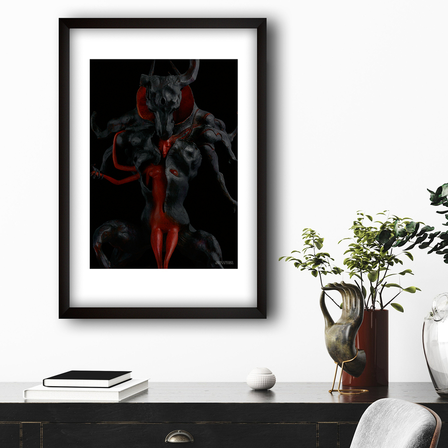 Для этого постера была использована деталь скульптуры «Укрощение Минотавра» из коллекции «Изнутри». Несмотря на угрожающую форму, это скорее лирическая композиция о взаимодействии между угрозой и нежностью, между инь и ян. Кто на самом деле сильнее в этой группе? Это противоборствующие энергии или они на самом деле действуют сообща? Как и многие работы Даши, эта композиция скорее рассказывает о внутреннем через внешнее, чем иллюстрирует конкретный момент или миф.