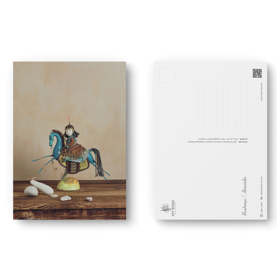 Открытка с изображением авторской куклы семьи Намдаковых.