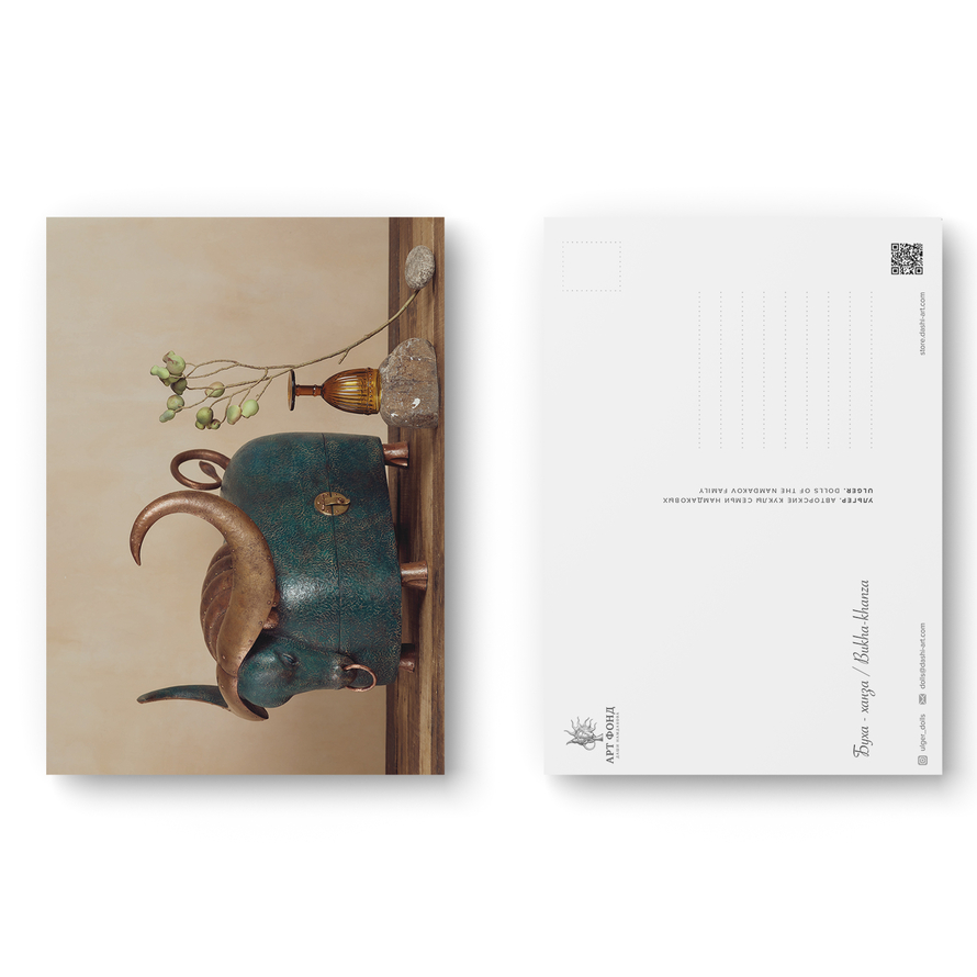 Открытка с изображением авторской куклы семьи Намдаковых.