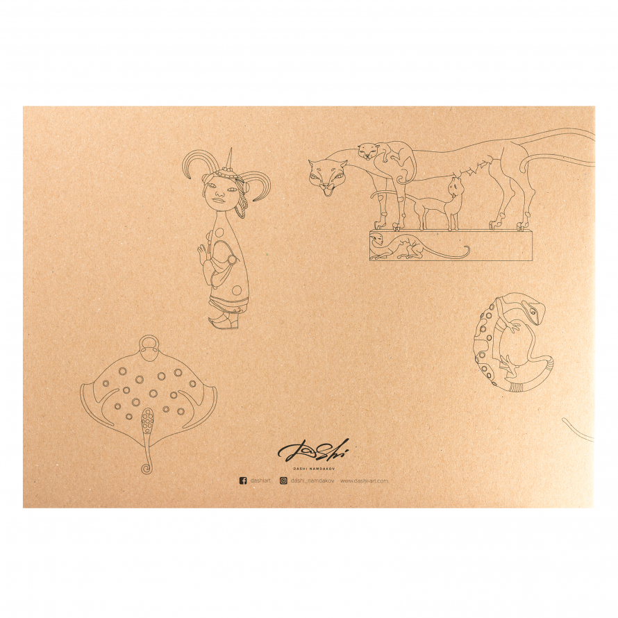 Детская раскраска со стилизованными изображениями скульптур и ювелирных украшений, объем- 10 листов