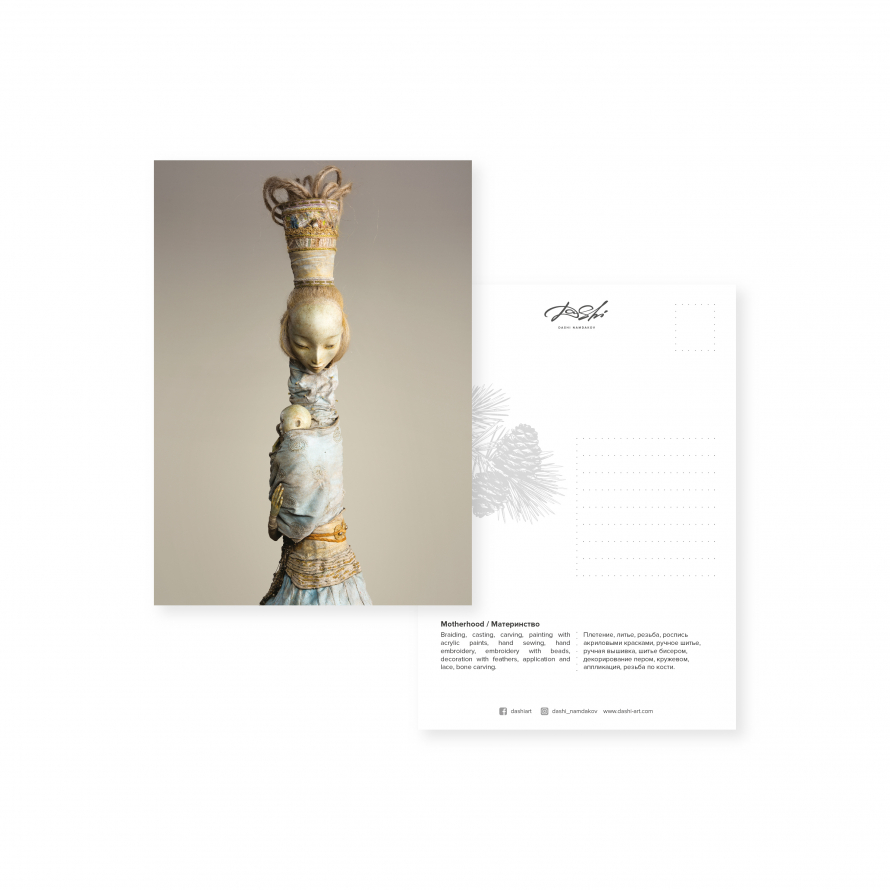 Открытка с изображением авторской куклы семьи Намдаковых.