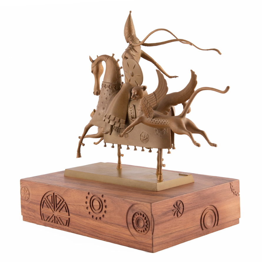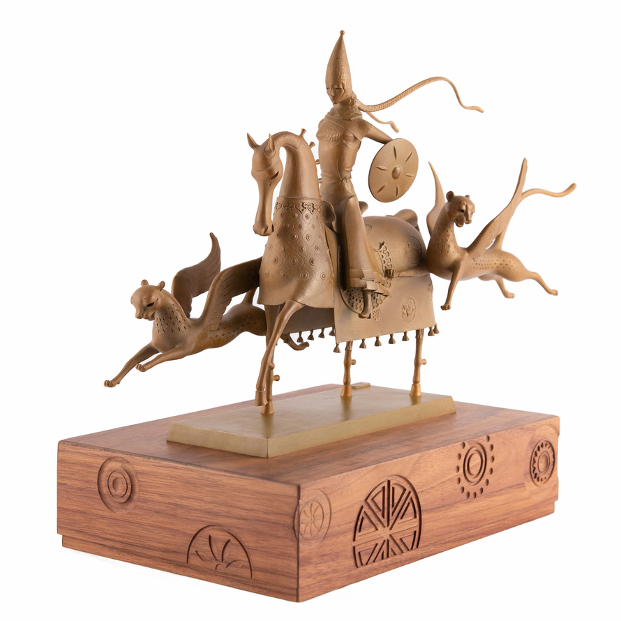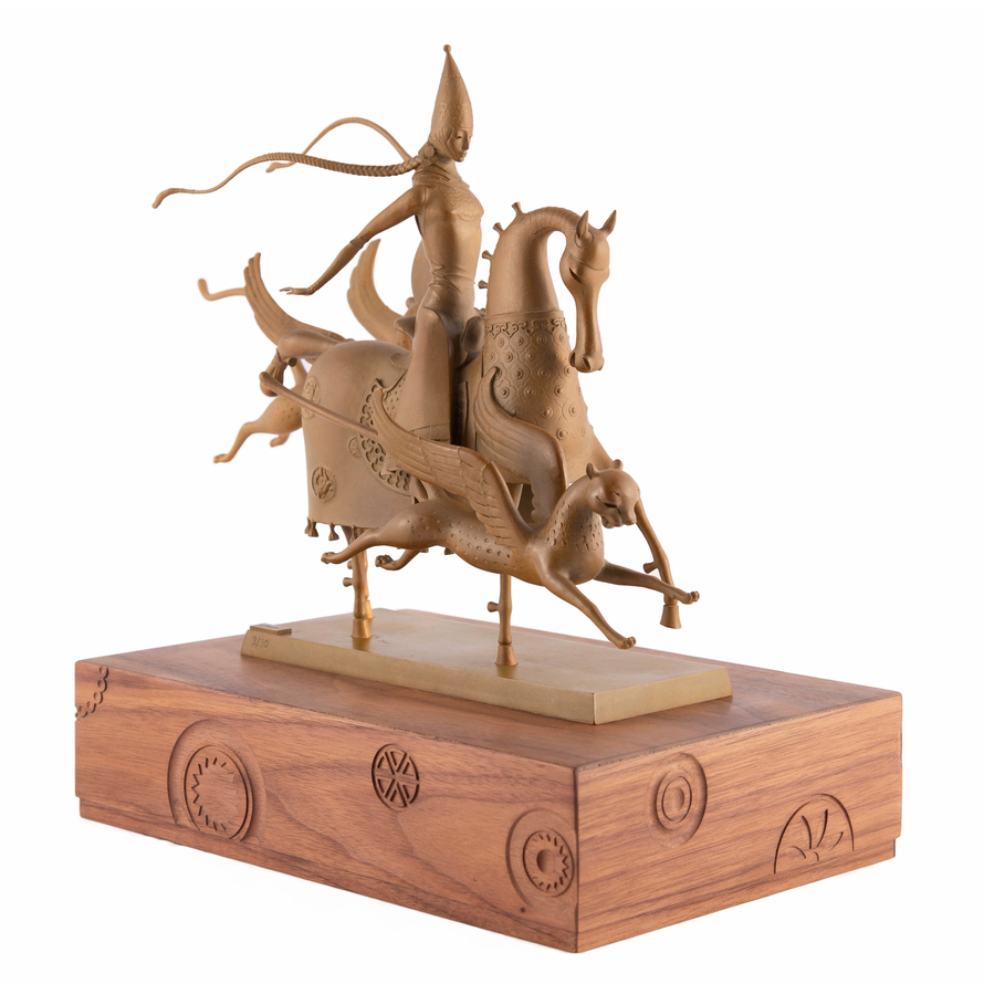 Легенда - это обобщенный мифологический образ женщины защитницы, идея беспрестанного движения вперед и развития при сохранении традиций и культурных ценностей. Монументальный вариант композиции установлен в Татарстане.