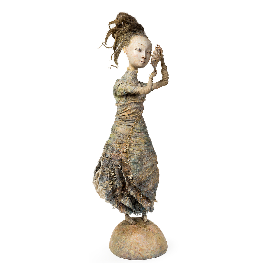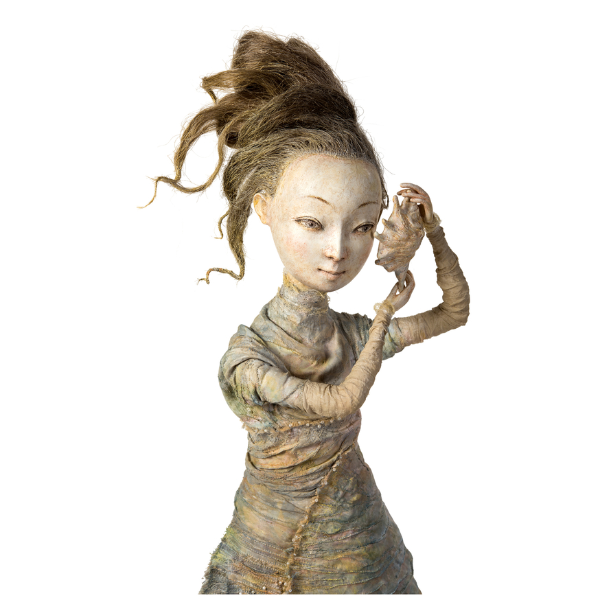 Смешанная техника Грациозная и поэтичная фигура девушки воплощает нежность и гармонию, близкую самой природе. Приложив к уху морскую раковину, она слушает завораживающие таинственные звуки, скрытые от других и доступные ей одной.